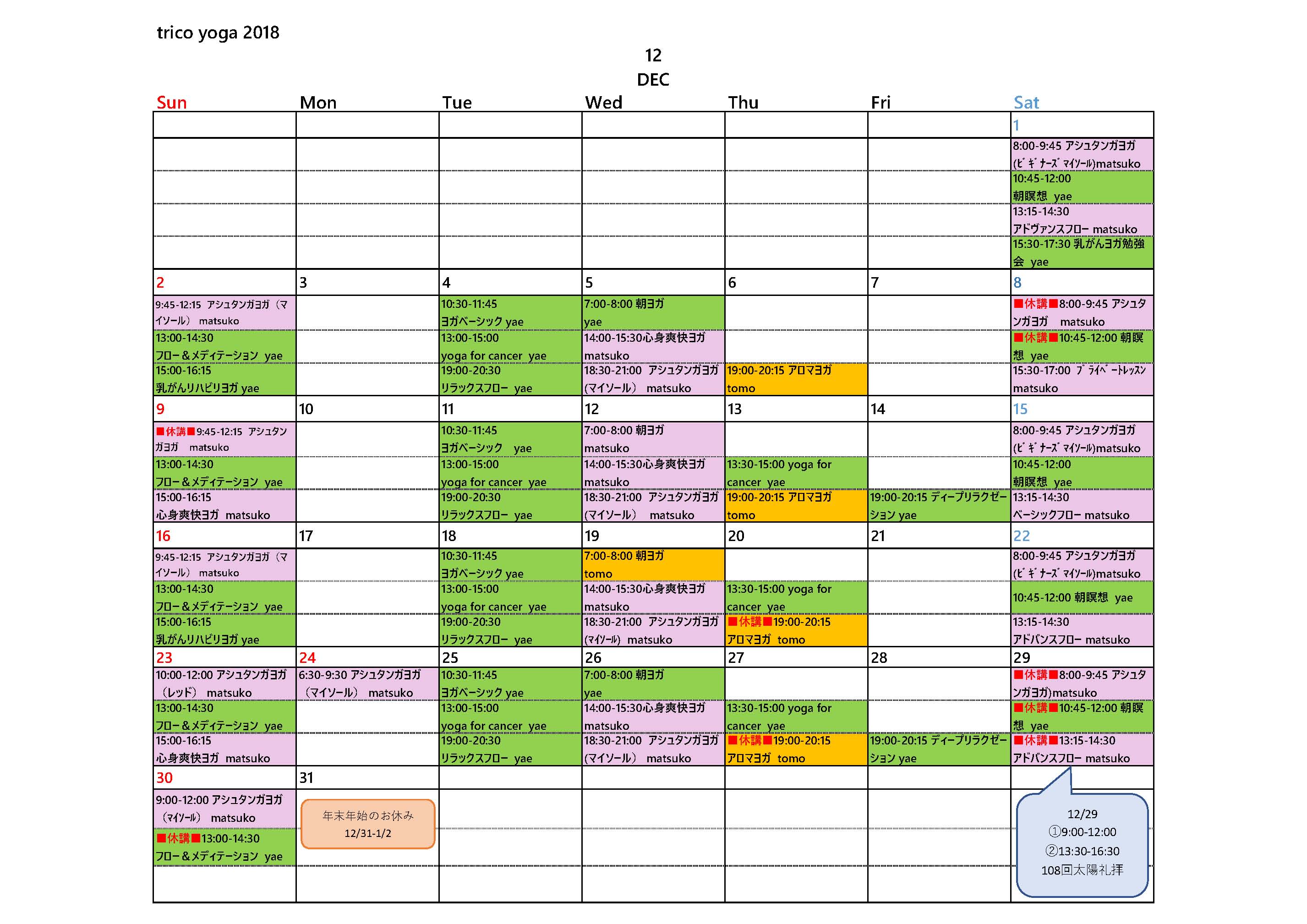12/29(土)①9:00-12:00 ②13:30-16:30 trico de 108回太陽礼拝