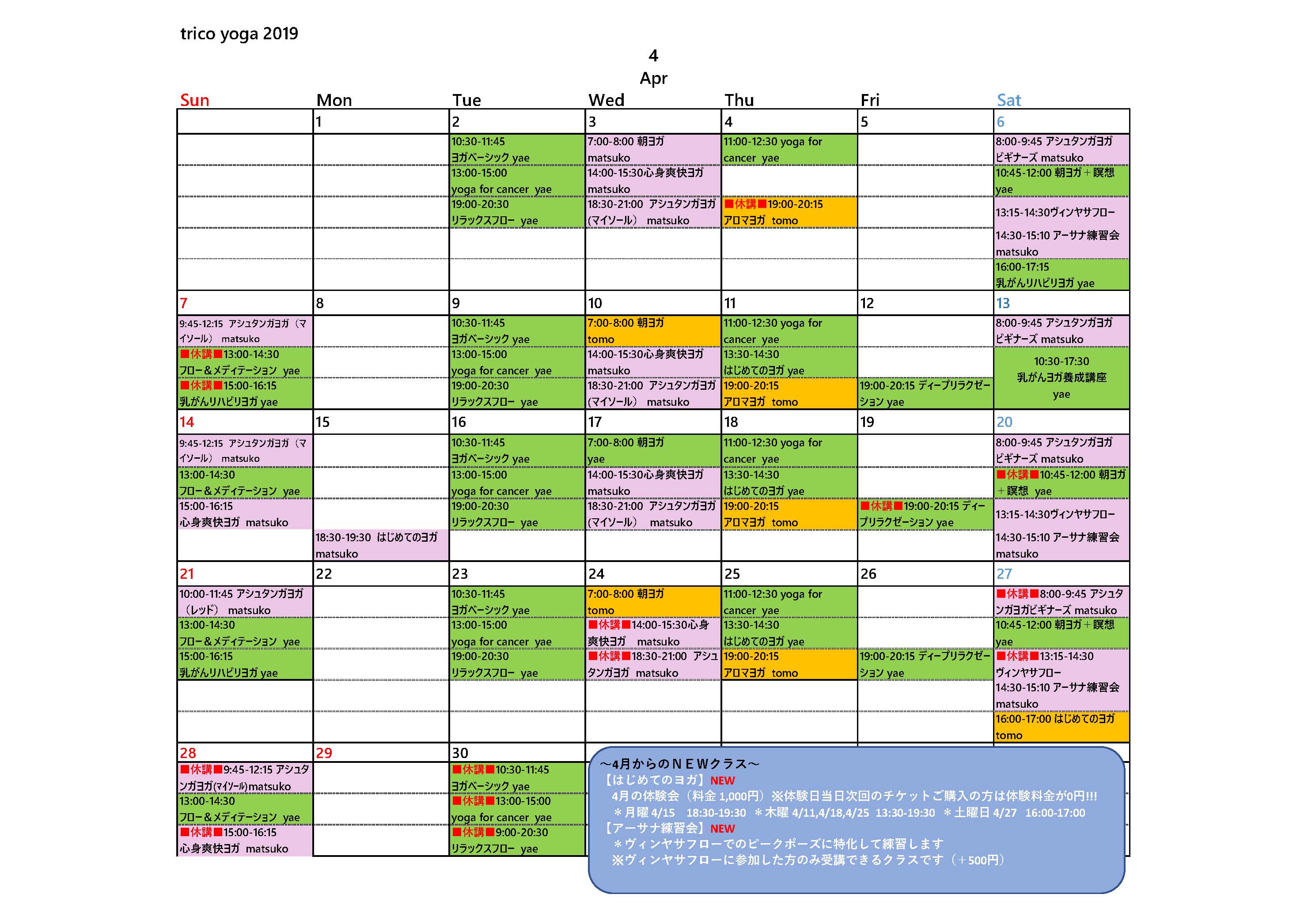 「はじめてのヨガ」や「アーサナ練習会」などNEWクラスもスタートします!!!