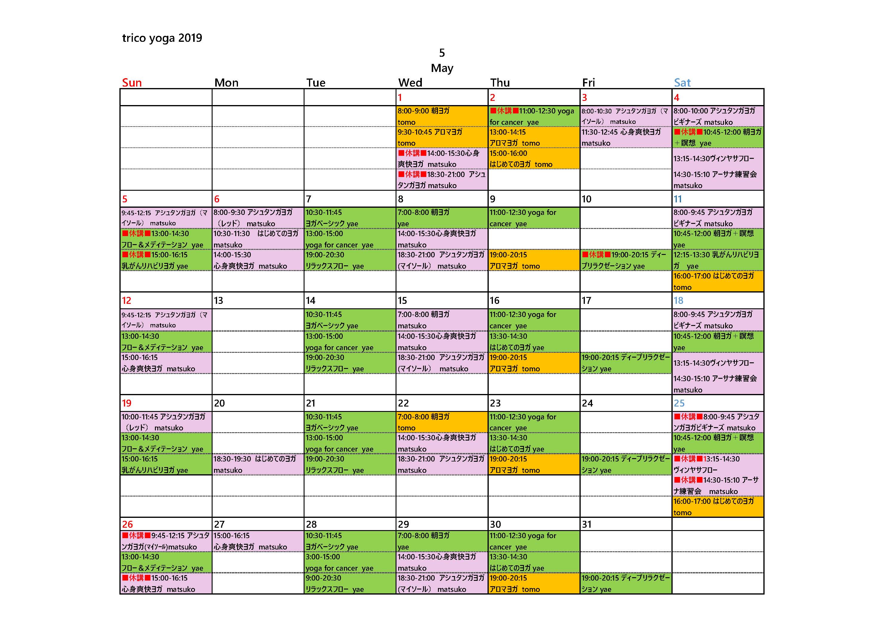 5月も「朝ヨガ」は毎週水曜日7:00-8:00(5/2 は 8:00-9:00)
