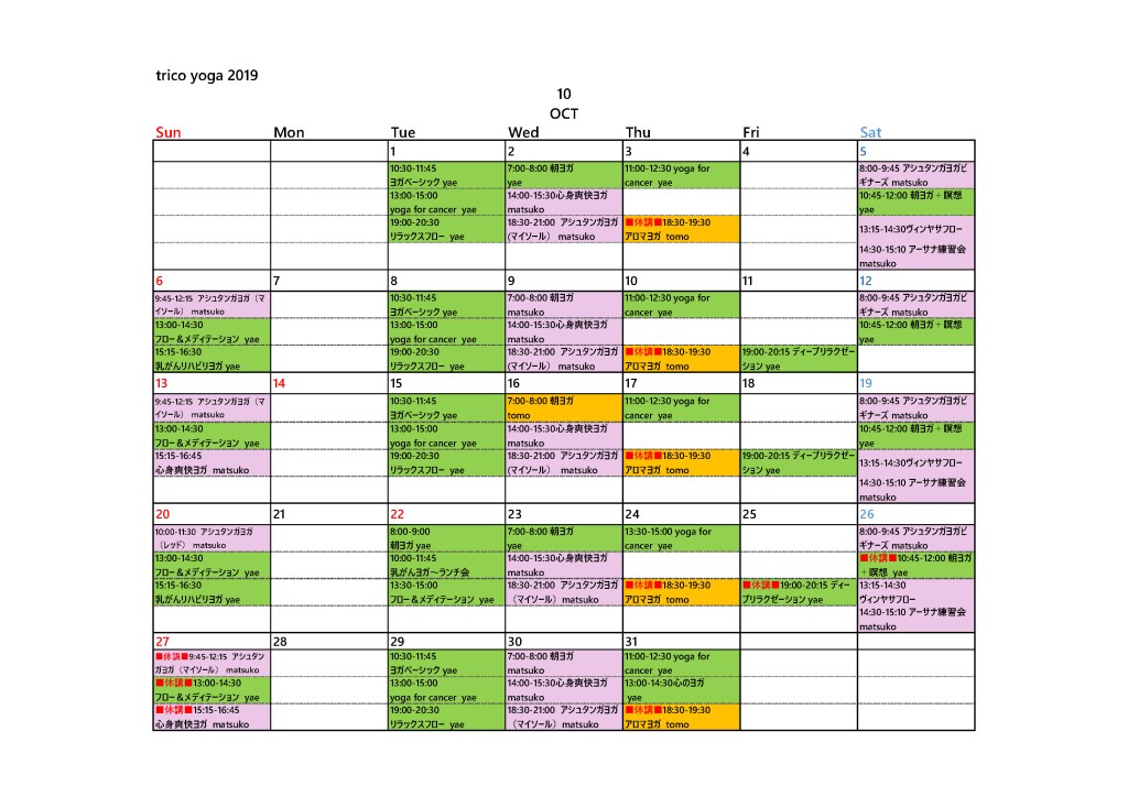 trico【2019年10月 monthly schedule】 2019年9月30日2019年9月30日 tricoyoga 10月もよろしくお願いします!!! 共有: クリックして X で共有 (新しいウィンドウで開きます) X Facebook で共有するにはクリックしてください (新しいウィンドウで開きます) Facebook いいね 読み込み中… 投稿者: tricoyoga tricoyoga の投稿をすべて表示