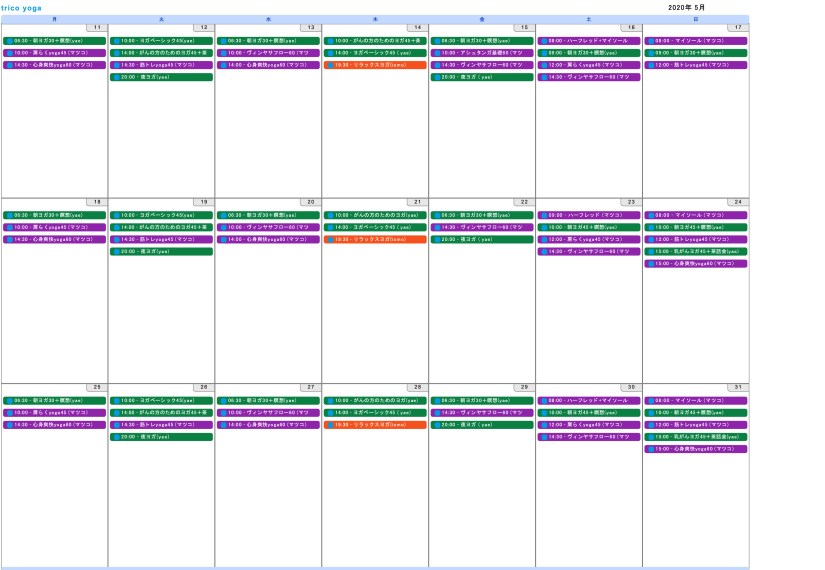 【5月11日~31日のオンラインヨガクラススケジュール】