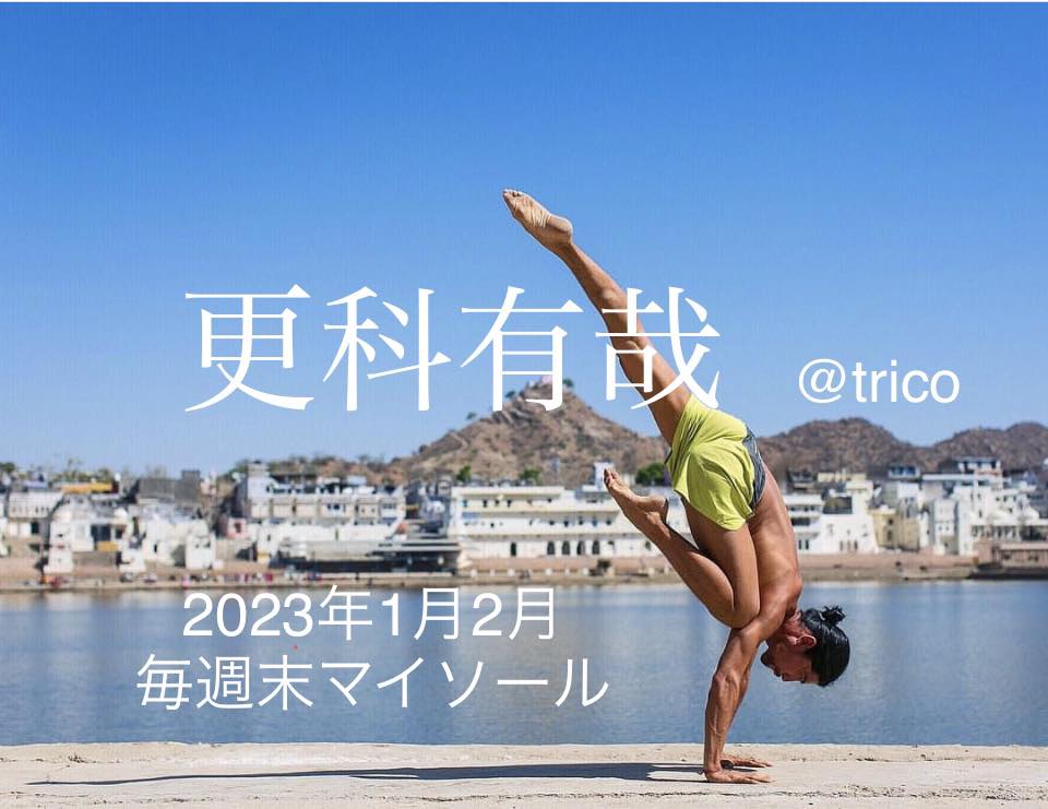 更科有哉先生によるマイソール&フルプライマリーレッドクラスを2023年1月2月の2ヶ月間の毎週土日に開催致します