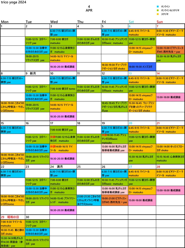 ・tricoヨガ指導者養成講座4/3(水)平日夜コース、4/14(日)土日コーススタート!!!