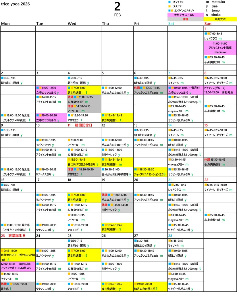【trico2026年2月間スケジュール】